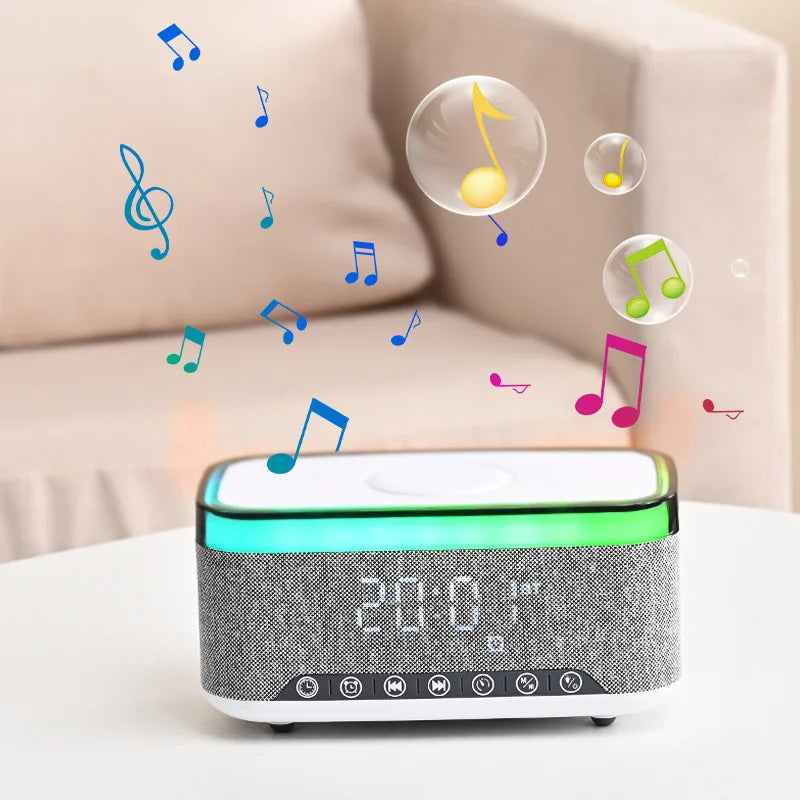 Carga inalámbrica para teléfono y reloj es un dispositivo multifuncional que combina la calidad de sonido, la conveniencia de la carga inalámbrica y la iluminación ambiental.