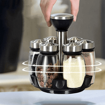 Organización y estilo en un solo producto. Descubre la magia del condimentero giratorio.